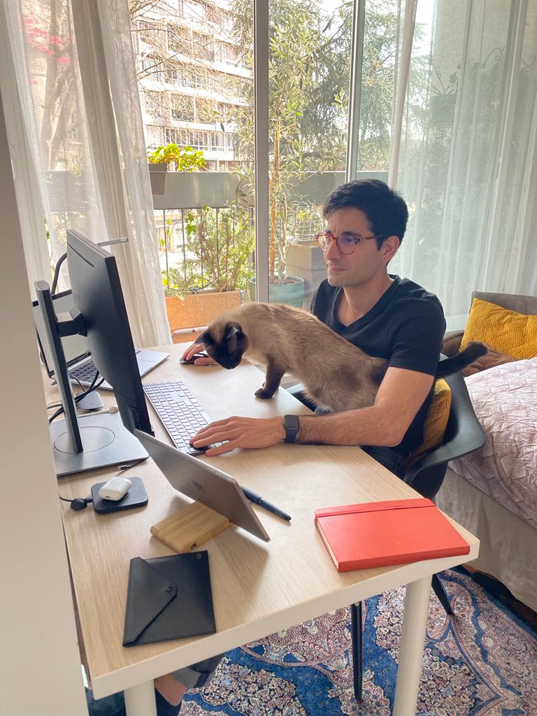 🐱 Being overwhelmed, Jean-Marie our co-founder & COO taught his cat to assist him with his tasks. Who needs a virtual PA when you have a cat. His now personal assistant, Leo, has been overviewing the development process and project managing. Meow!