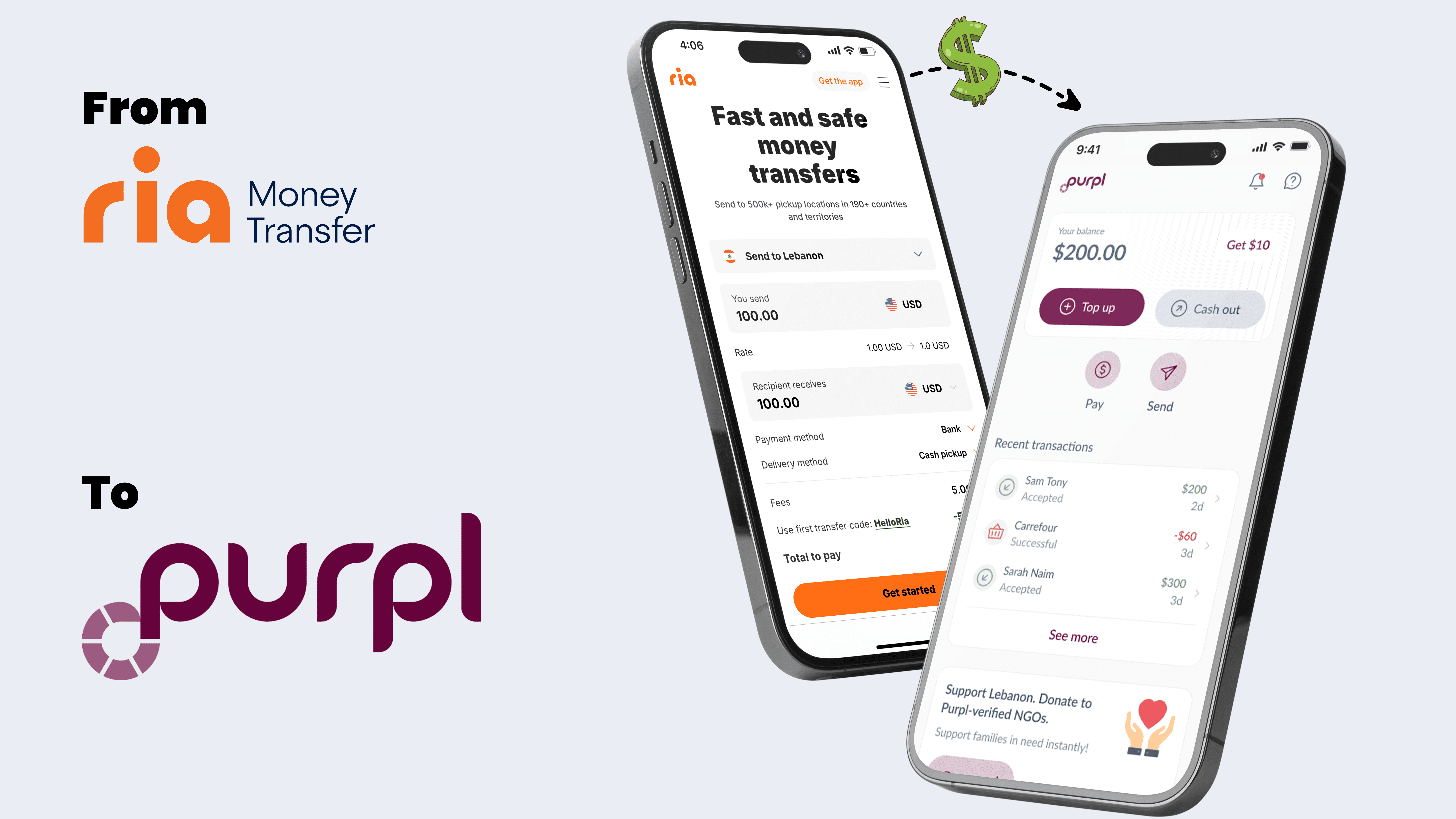 If you’re looking for a reliable way to send money to Lebanon, try Ria & Purpl today—and don’t forget to use the promo code HELLORIA for a fee-free first transfer! 💜